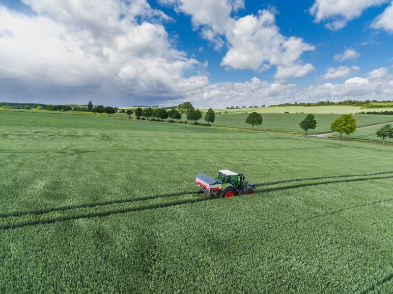 Systém využíva centrálny bod vypúšťania hnojiva. Hnojivo sa zrýchľuje plynulo bez nárazov a bez prachu. Vďaka tomu vzniká rovnomerný rozmetací obrazec na celej šírke záberu.