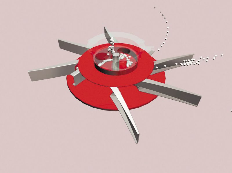 Systém zabezpečuje plynulé urýchlenie hnojiva bez nárazov. Hnojivo sa dostáva na kotúč bez trieštenia a prachu. Z toho vyplýva rovnomerný tok materiálu počas celej práce.