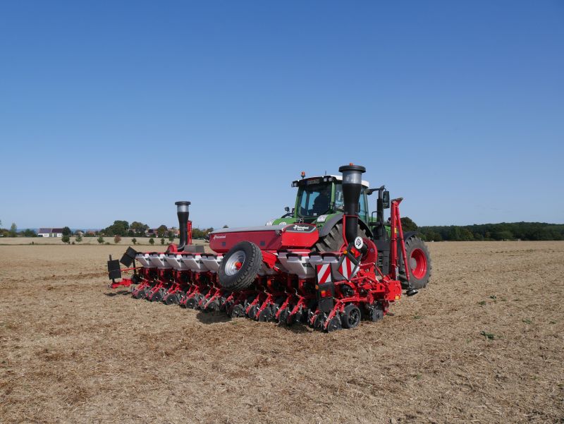 Okrem toho stroj využíva systém e-drive / e-drive II. Preto každá výsevná jednotka pracuje s individuálnym elektrickým pohonom.