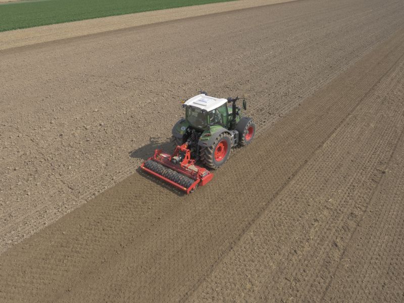 Rozostup rotorov 25 cm zabezpečuje ideálne prekrytie pracovnej šírky. Štyri rotory na meter zároveň znižujú špičkové zaťaženie prevodov a zlepšujú kvalitu drobenia pôdy.