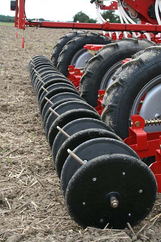 Zadné pritláčacie kolieska zabezpečujú dobrý kontakt semena s pôdou, čím podporujú rovnomerné vzchádzanie porastu.